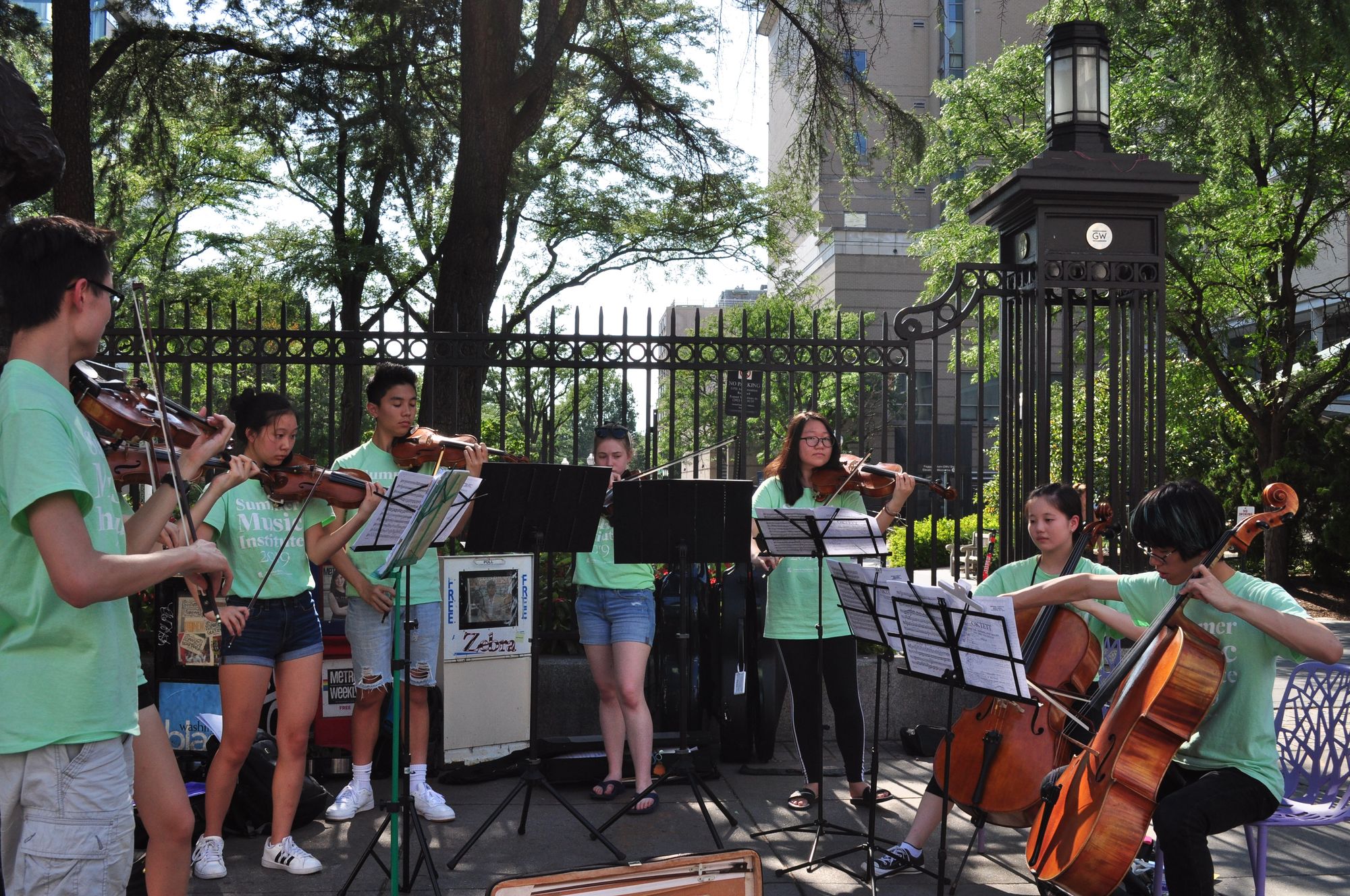 At the institute, I met countless other individuals with an inspiring amount of talent and dedication to their craft. While we all came from different backgrounds, music was our common language and our method of growth, and I grew more accustomed to making new friends and introducing myself to people. I cooked together with my roommate, cracked viola jokes with my stand partner, and hung out with my chamber group after rehearsal. Additionally, I was able to explore my ideas of self expression and risk in music. After hearing the stories and attending the workshops of professionals and mentors, my view of music evolved from a form of personal connection to a form of community engagement, closing the traditional gap between performer and non-performer. I was still a bit averse to change, but every supposed risk or change at NSOSMI exposed me to a variety of opportunities and experiences. Not only was I able to meet new musicians and reevaluate my perspective, but I also performed in spaces and genres outside of my comfort zone – busking outside of the Metro with friends, performing for children at the public library with my chamber group, and improvising for the first time without fear.