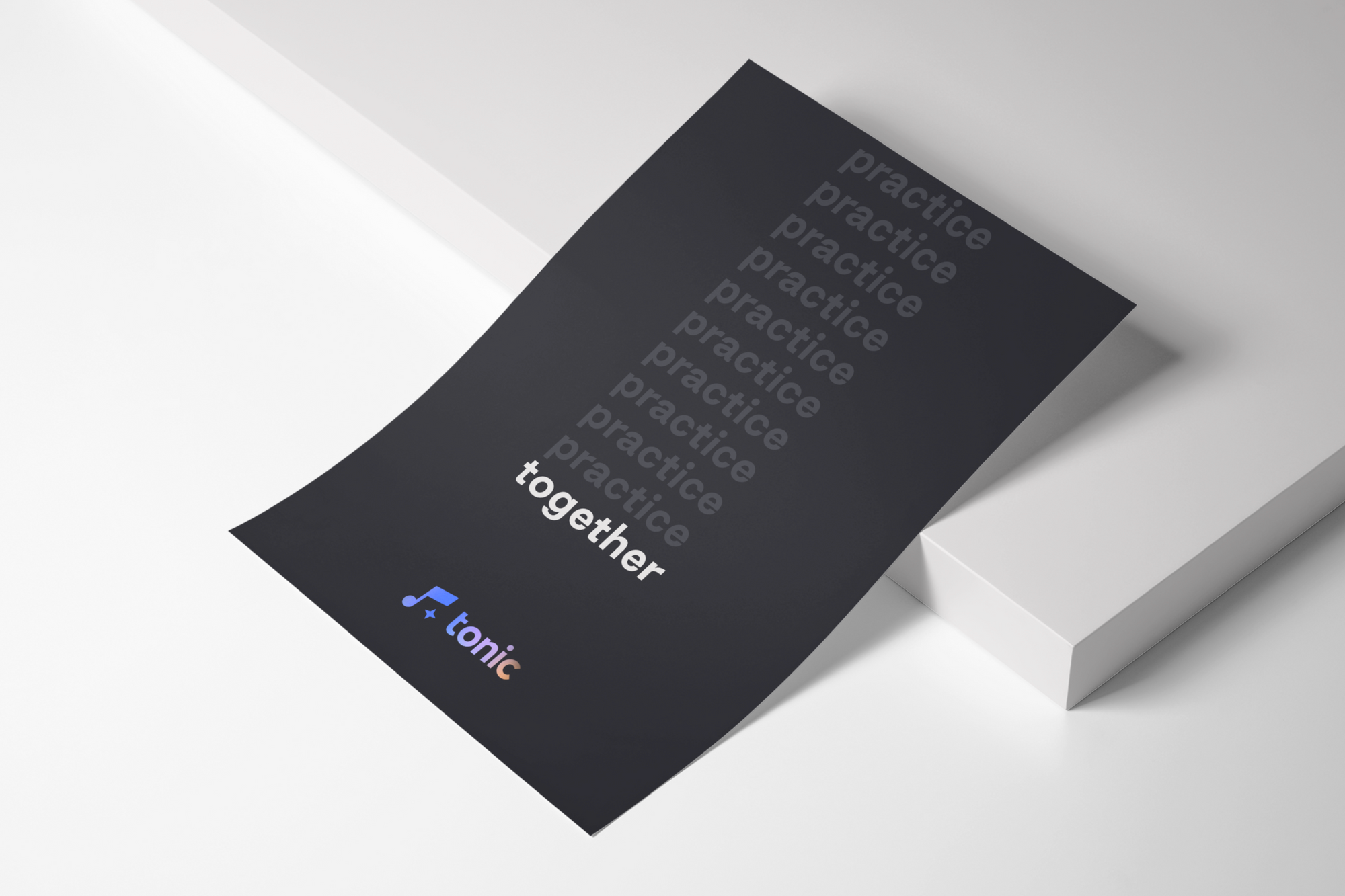 The first of any diatonic scale, the tonic is the root or home of a melody. It’s a baseline and a point of return, much like the home we are creating for music practice. In combining this idea of a first note with a spark, our brand mark began to stand for something bigger: music, connection, and growing on a creative journey. That spark and implied next note, the next step, could be anything. Tonic is there as a bridge, and it is up to those starting the journey to take their next step, whatever it may be. Our brand mark, which we named the Tonic Note, symbolizes this journey.